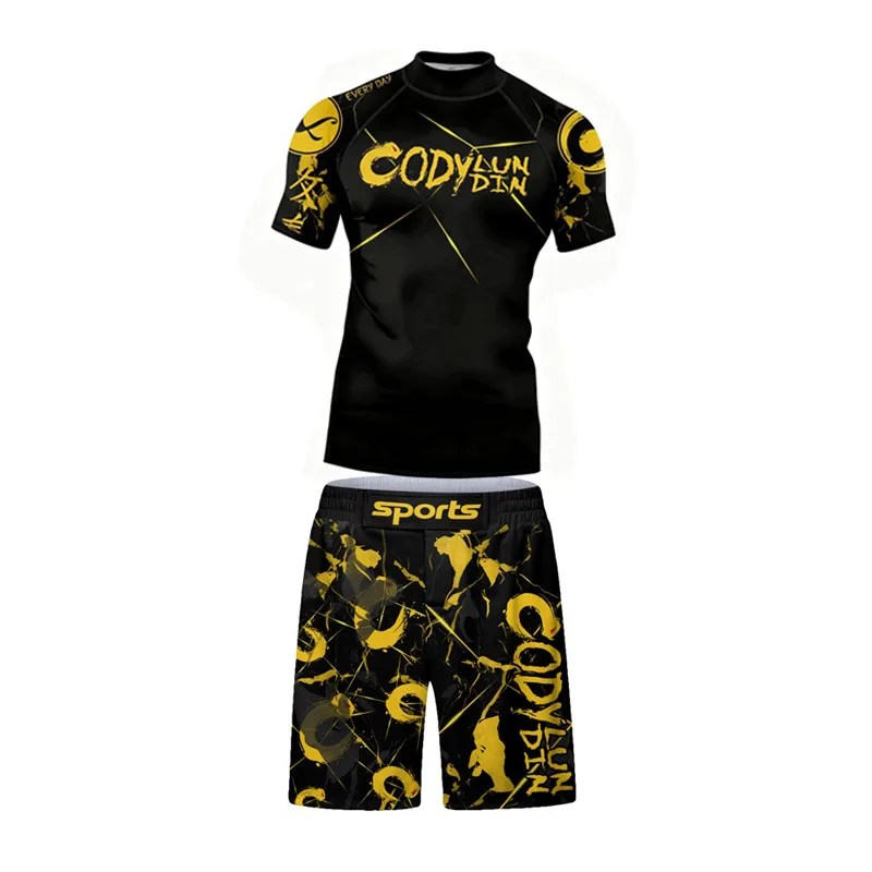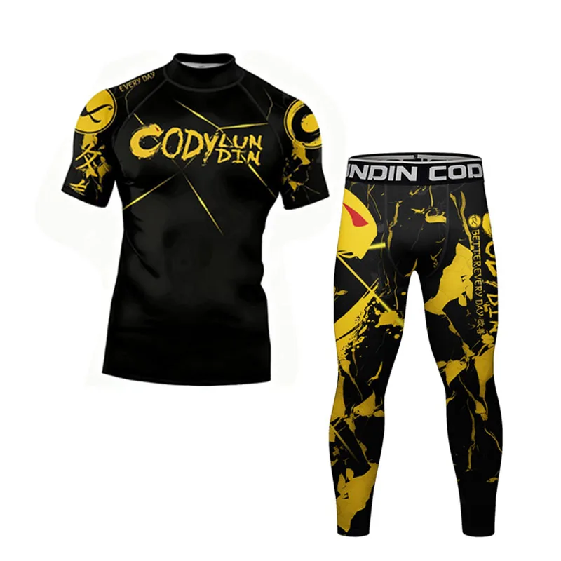 New Bjj Jiu Jitsu Rashguard MMA T-shirt+Pant Suit For Men Rubber Waist Kickboxing Grappling Boxing Jerseys Rash Guard Sportsuits