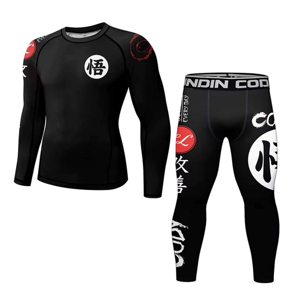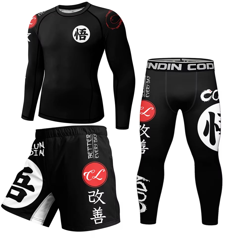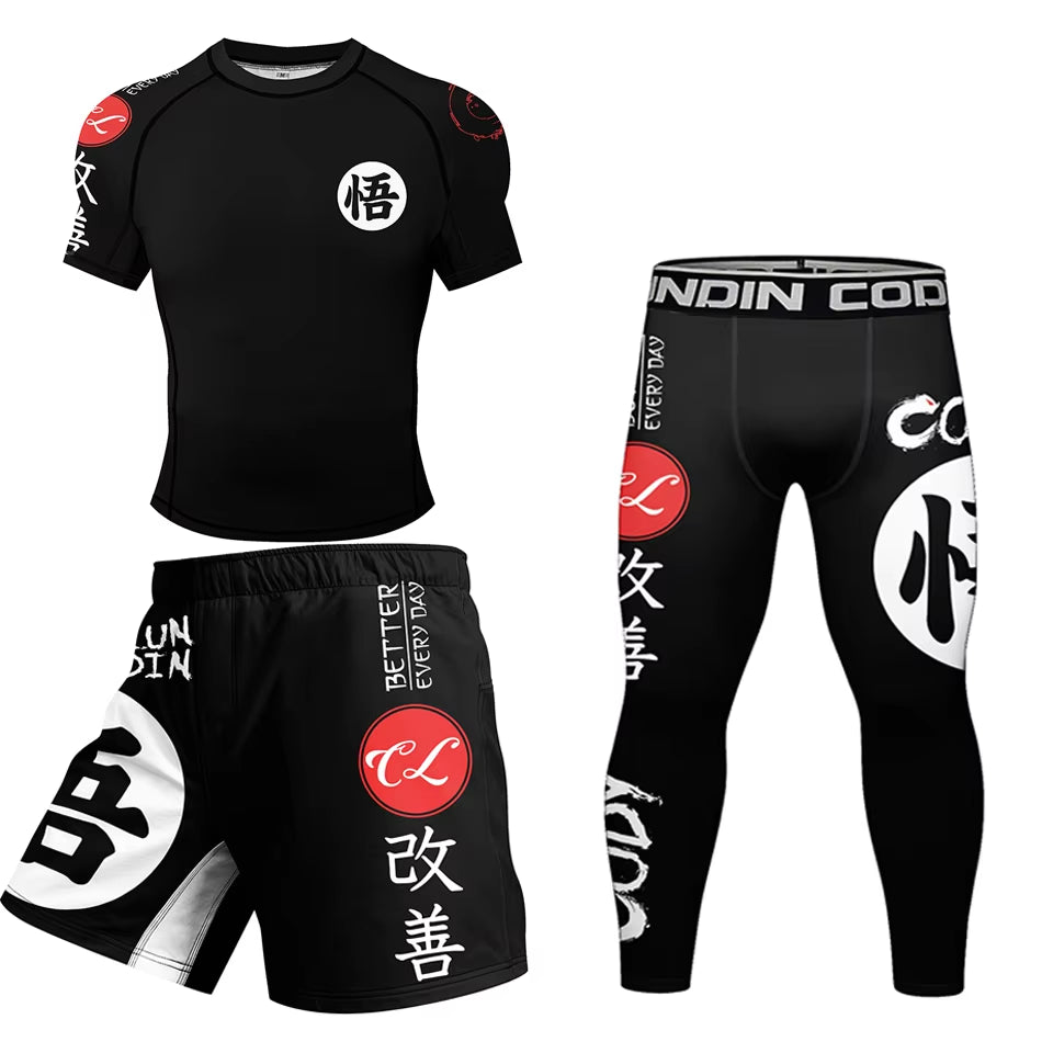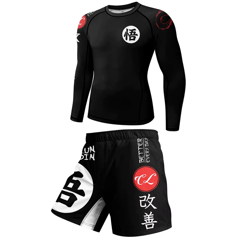 New Jiu Jitsu Rashguard MMA T-shirt +Pants For Men 4PCS/Set Brazilian Grappling Bjj Boxing Rash Guard Sport Clothing Gym Shorts