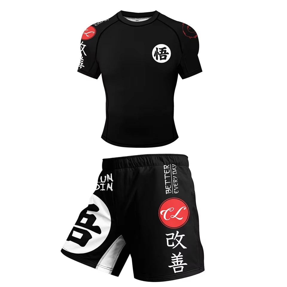 MMA BJJ Rashguard T Shirts+Pant Set Rash Guard Fitness Men Tracksuit Boxing Jerseys Muay Thai Compression Shirt Sport MMA Shorts