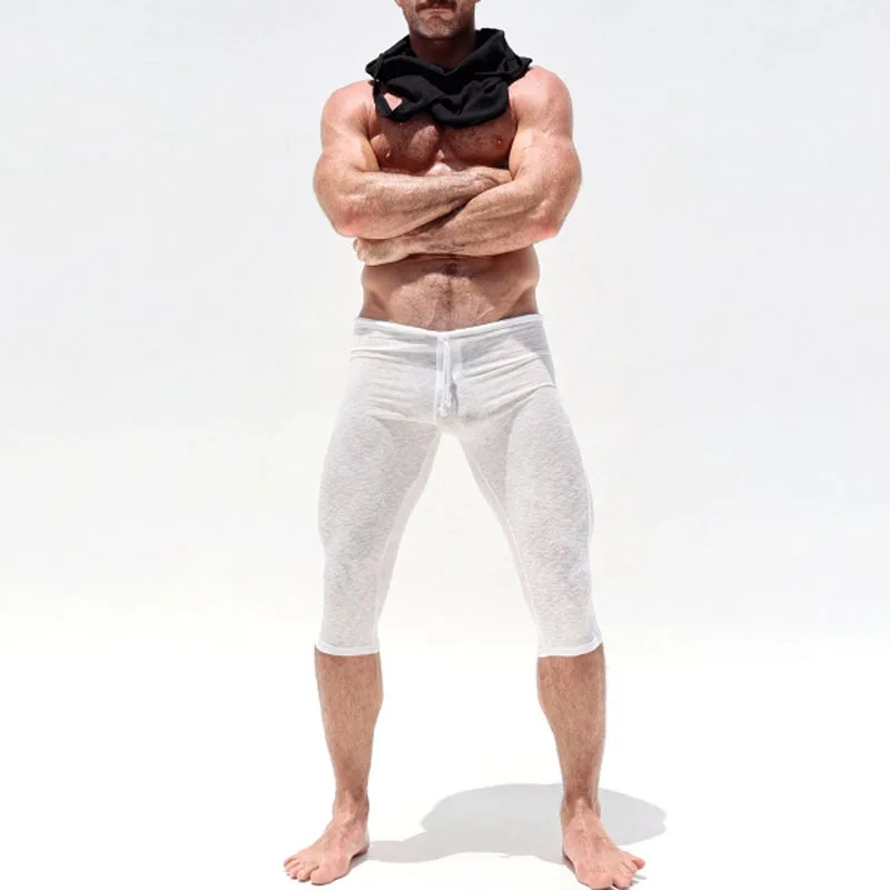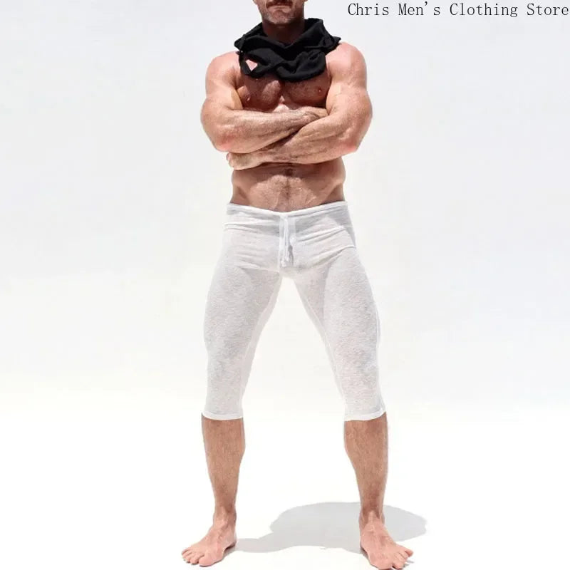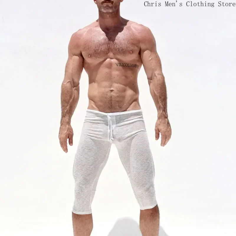 Sexy Elastic Slim Men 7 Minutes Fitness Pants Sweatpants Soft Breathable Fitness Sports Black Vest Sexy Hollow Men Casual Vest
